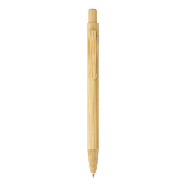 Balpen met bamboe body, clip, knop en tip. Met blauwe navulling.