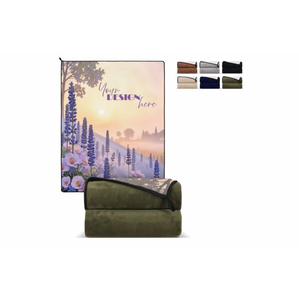 Warme en gezellige deken gemaakt van 100% polyester microvezel. Eén kant van de deken is geverfd in een mooie warme kleur en een optionele fullcolour sublimatiedruk op de andere zijde. Zwarte bies voor alle kleurencombinaties.