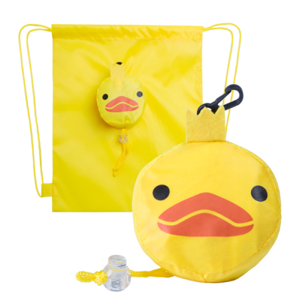 Opvouwbare trekkoord tas voor kinderen. In de vorm van een dier, met plastic karabijnhaak. 190T Polyester.