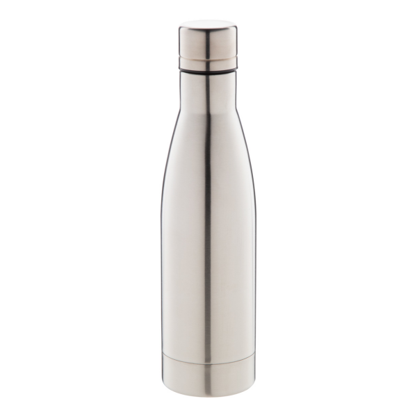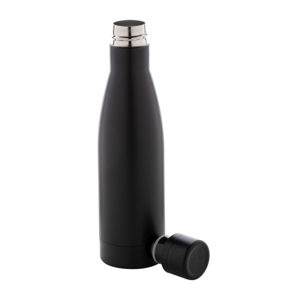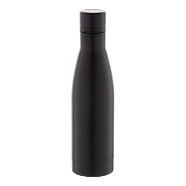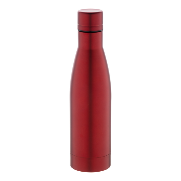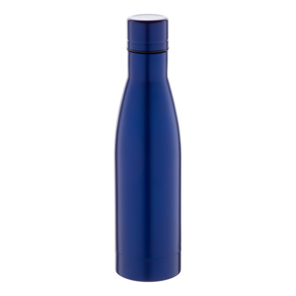Dubbelwandige roestvrijstalen, koper geïsoleerde vacuümfles, 500 ml. Koperen isolatie houdt dranken 12 uur warm en 24 uur koud.