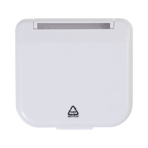 Uitgebreide reisnaaiset in gerecycled ABS etui. Inclusief 6 gekleurde polyester garens, 3 naalden, 3 kopspelden, een veiligheidsspeld, 2 knopen, 2 drukknopen, een draadinsteker, een pincet en een schaar.