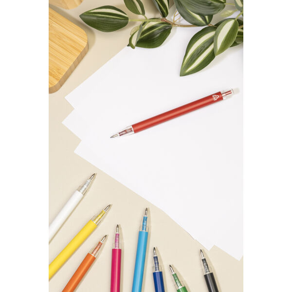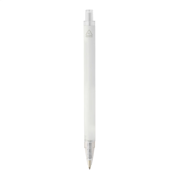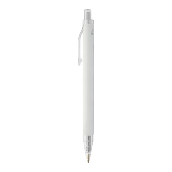 Gerecycleerde aluminium balpen met matte afwerking en transparante RPET-onderdelen. Blauwschrijvend.