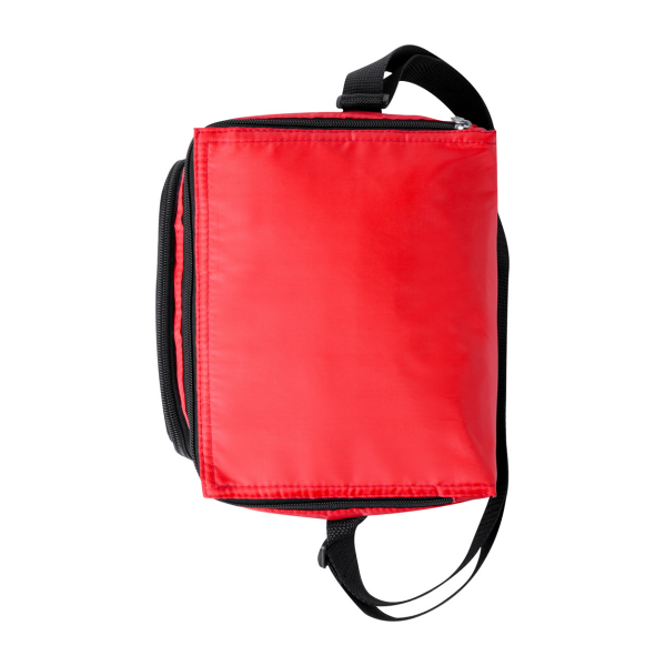Polyester koeltas met compartimenten met ritssluiting, aluminium vulling en schouderband. Voor 6 blikken van 0,33 L. 210D-polyester.
