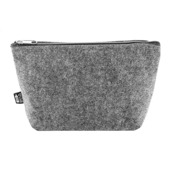 RPET-vilt cosmetische zak met ritssluiting. Met onderscheidend RPET-label.