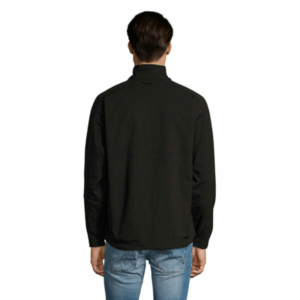SOL'S RELAX Heren softshell jas 340g/m². Technische stof met één van de hoogste niveaus van waterdichtheid en ademend vermogen op de markt. Gedetailleerde mouwen en getailleerd model. Voor maximaal comfort. Microfleece voering. Aan de binnenkant een kabeldoorgang voor een mobiele telefoon. 3 lagen. 94% polyester - 6% elastaan. Membraan 8000 mm waterdicht en ademend. 2 Zijzakken met ritssluiting.