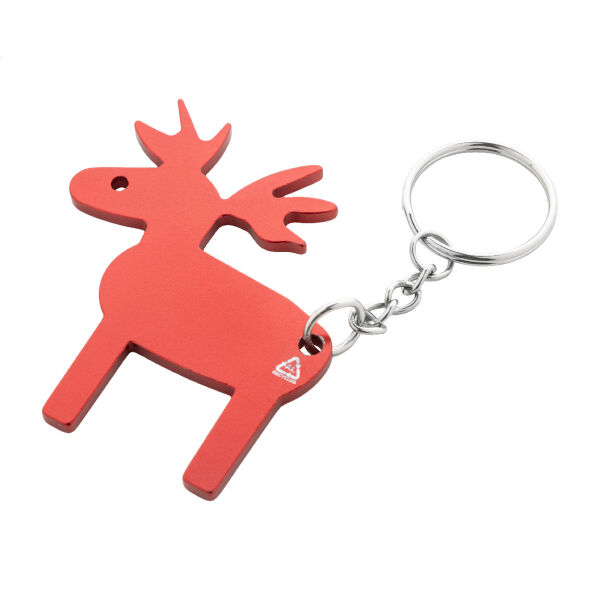 Aluminium sleutelhanger met metalen ring, in de vorm van een rendier.