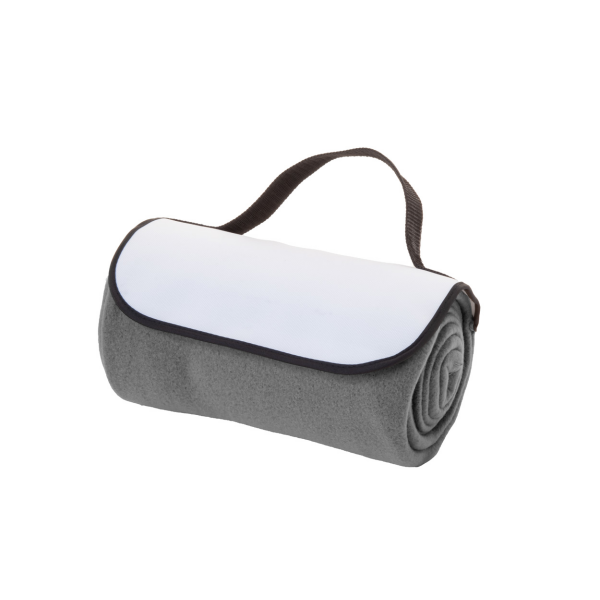 Custom made RPET polar fleece deken (200 g/m²) met klittenband handvat in 600D RPET polyester. Met sublimatiebedrukking en onderscheidend RPET-label. MOQ: 25 stuks.