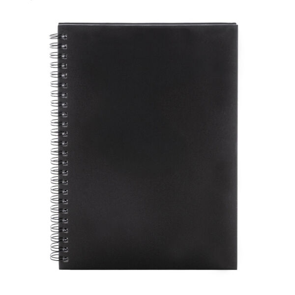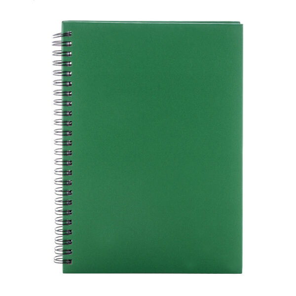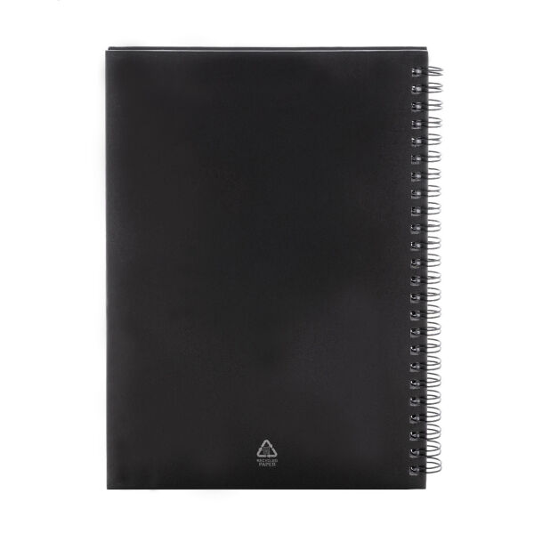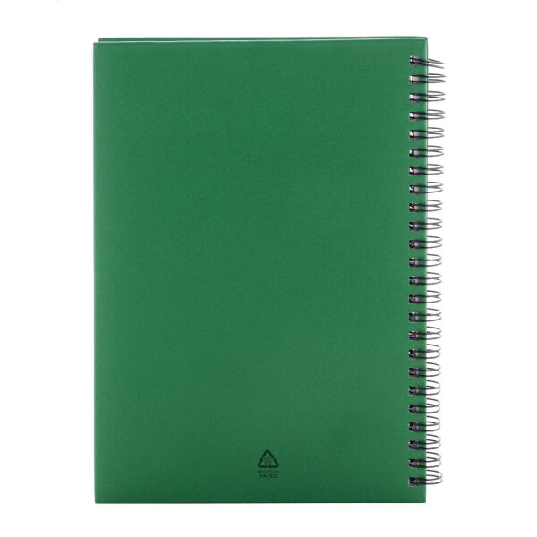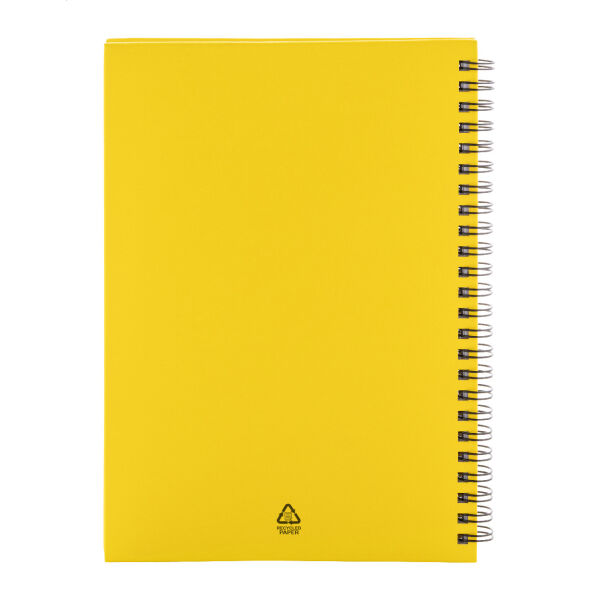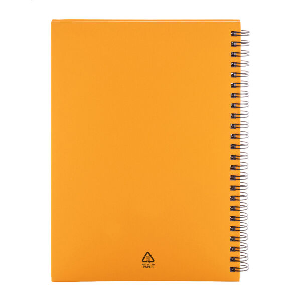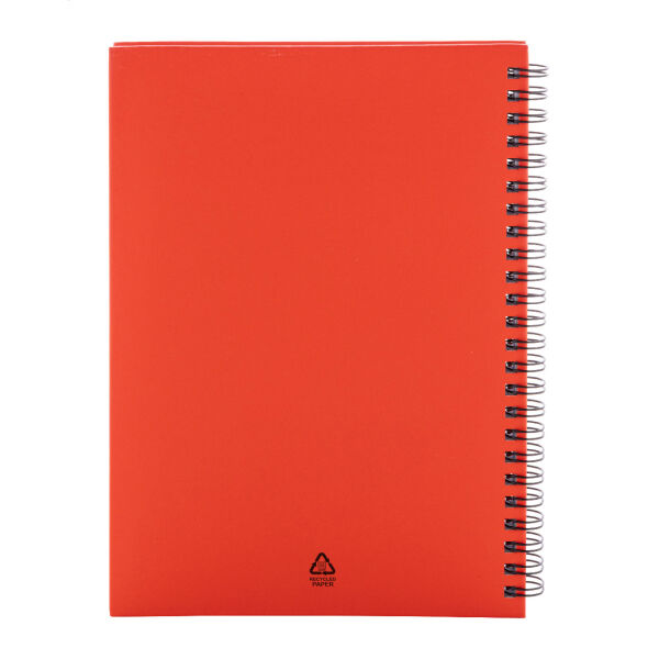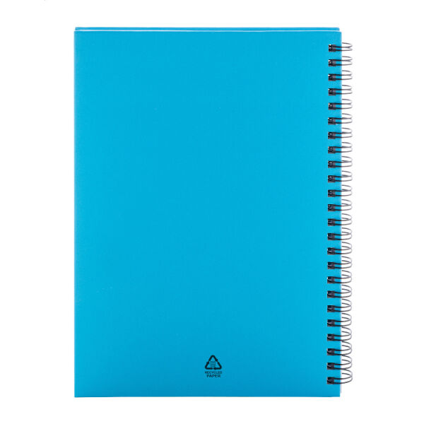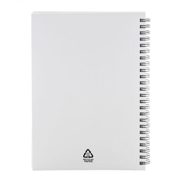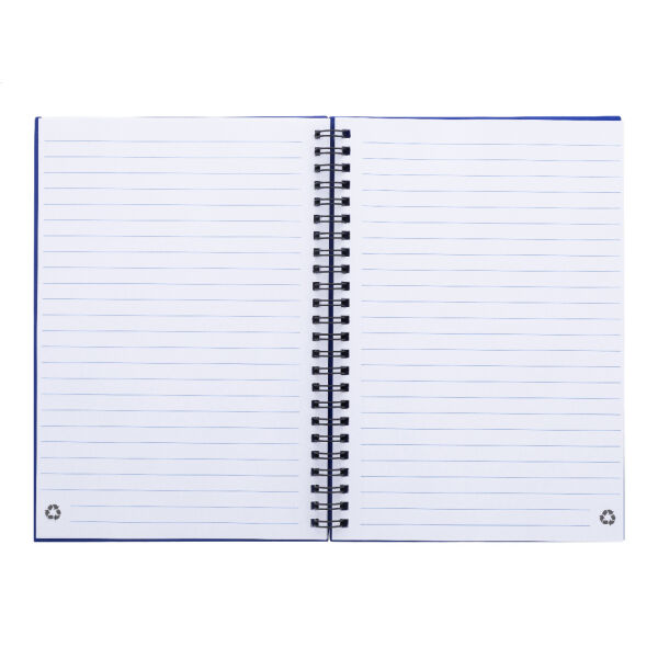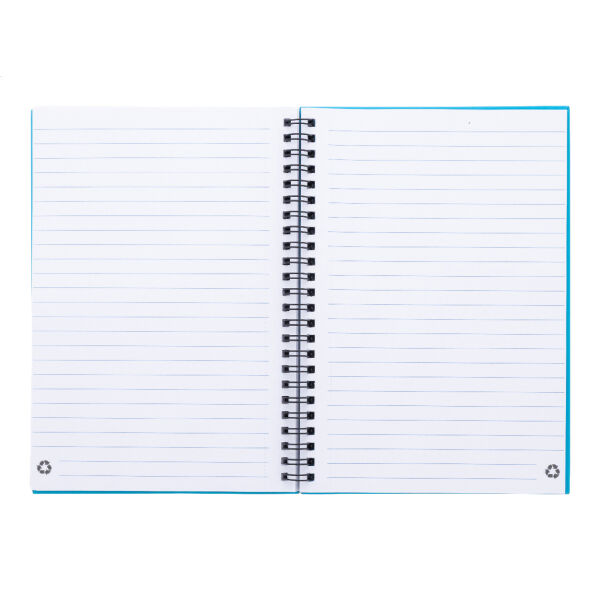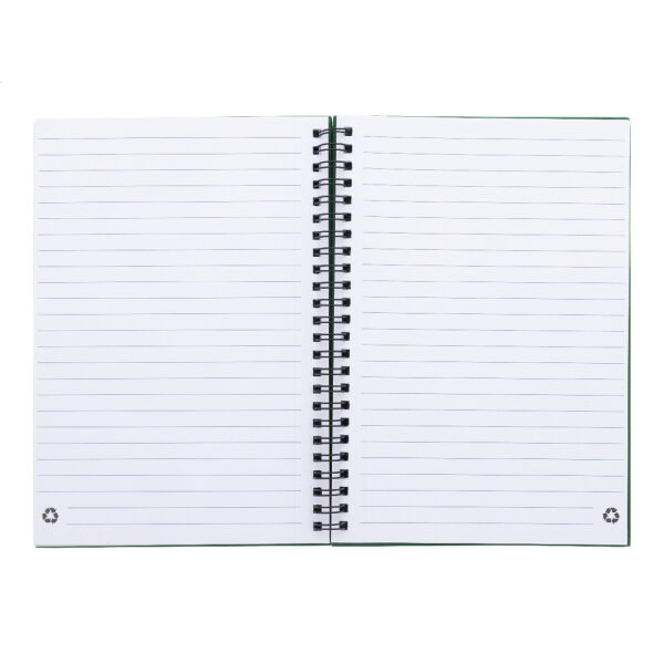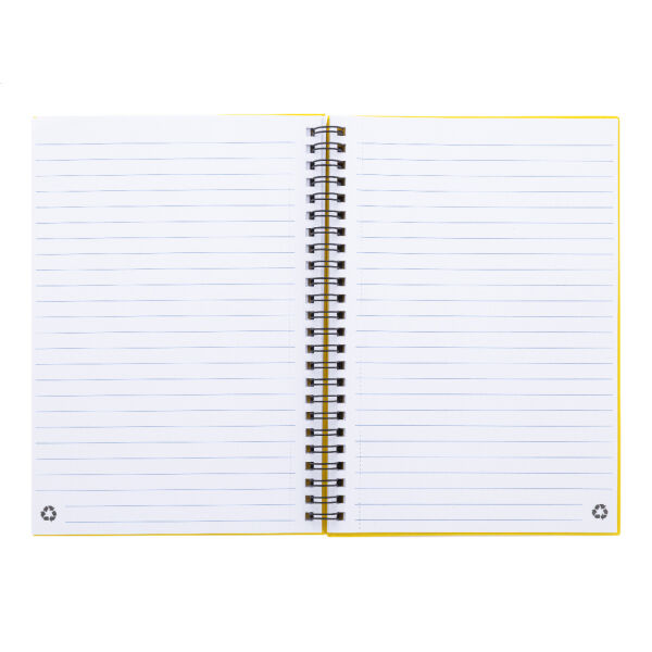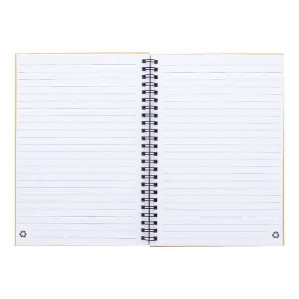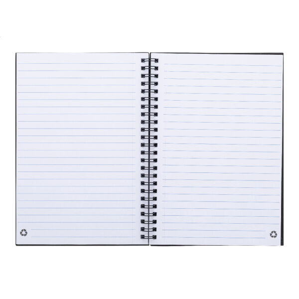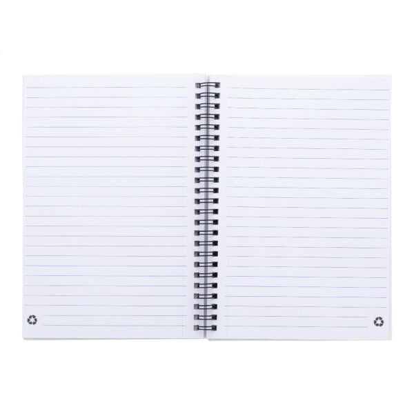 Met gerecycled papier bedekt spiraalvormig notitieboekje met 80 gevoerde vellen in gerecycled papier. A5 grootte.