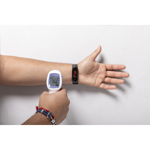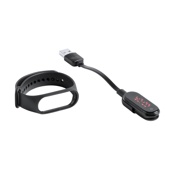 Thermometerarmband met 0,96" LED-scherm en TPU band. Met USB-oplaadkabel.